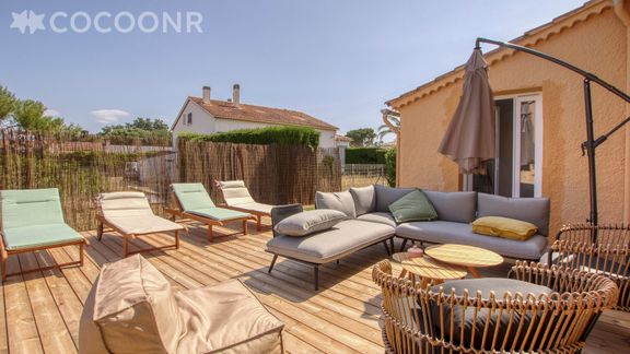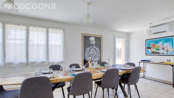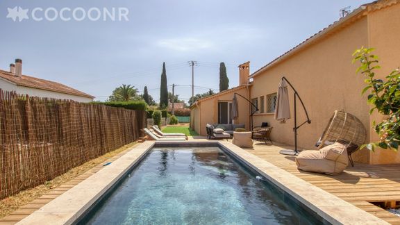 L'Agence Cocoonr/Book&Pay vous propose, à Six-Fours-les-Plages, cette charmante maison climatisée avec piscine, d’une superficie de 135 m² et pouvant accueillir jusqu’à 8 voyageurs. Elle est composée d’une jolie pièce à vivre de 44 m², cuisine équipée, de quatre belles chambres, une salle de bain (avec douche et baignoire) et vous pourrez profiter d’un jardin d’environ 640 m². Wifi, draps et serviettes inclus, nous n’attendons plus que vous !