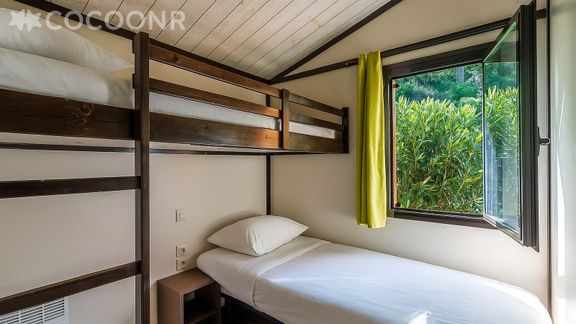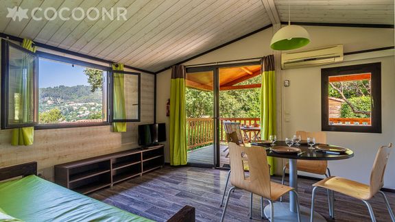 L'agence Cocoonr∕Bookandpay vous propose à la location, à Solliès-Toucas, ce chalet climatisé dans une résidence arborée avec piscine, d’une superficie de 35 m² et pouvant accueillir jusqu’à 6 voyageurs. Il est composé d’une pièce à vivre de 15 m², d'une cuisine équipée, de deux chambres et d'une salle d'eau avec douche. Nous n'attendons plus que vous !