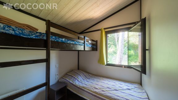 - Chambre 1 : avec un lit superposé (1 couchage) et un lit simple