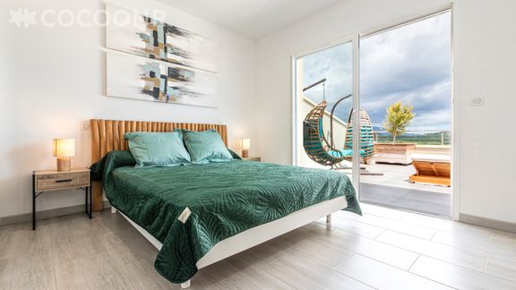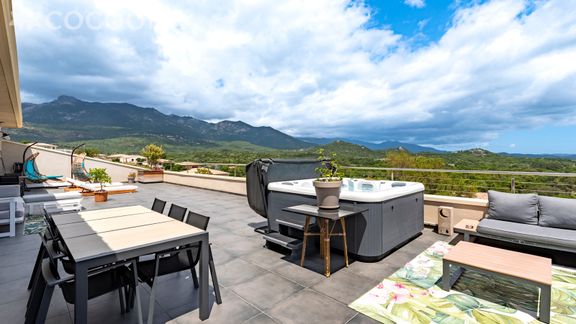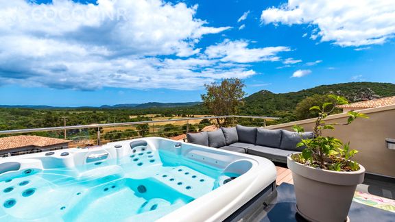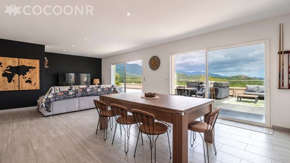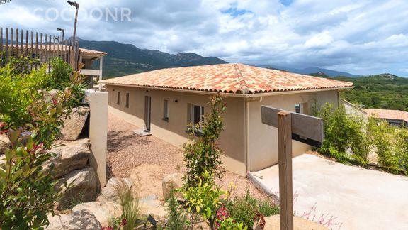 L'agence Cocoonr/Book&Pay vous propose à la location, à Sotta, cette charmante maison de plain-pied, entièrement climatisée et avec vue montagne, équipée d'une piscine, d'un jacuzzi, d’une superficie de 156 m² et pouvant accueillir jusqu’à 8 voyageurs. Elle est composée d’une jolie pièce à vivre de 54 m², d'une cuisine ouverte équipée, de trois belles chambres, de trois salles de bain et vous pourrez profiter d’un jardin d’environ 600 m². Wifi (fibre optique), draps et serviettes inclus, nous n’attendons plus que vous !