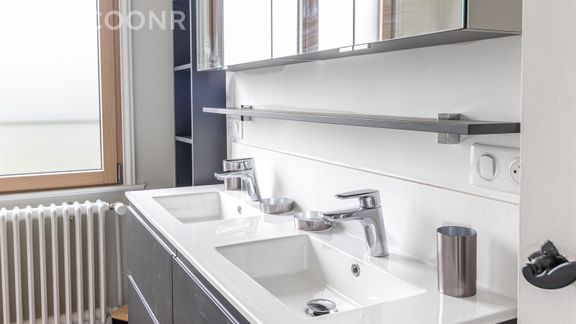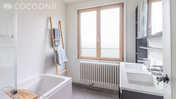 - Une salle de bain (avec baignoire) et lavabo double vasque