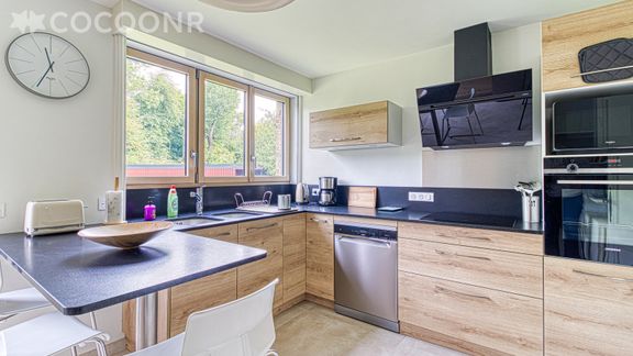 - Une cuisine équipée avec notamment : bouilloire électrique, four, four à micro-ondes, grille-pain, lave-vaisselle, plaques de cuisson...