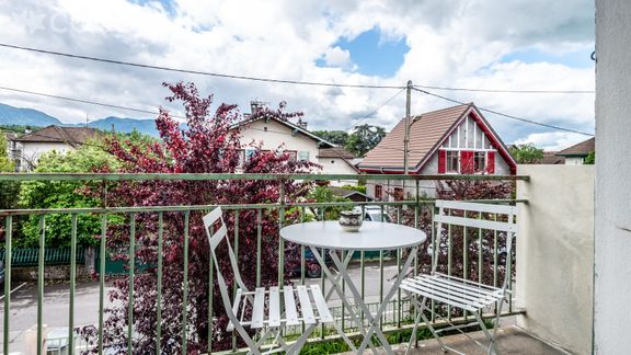 - Côté chambre, un balcon de 3 m² exposé sud∕est, meublé d'une table et deux chaises pour profiter des beaux jours