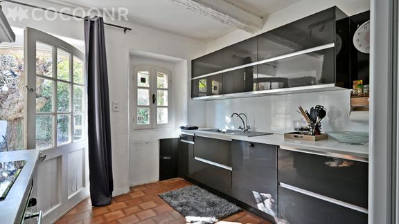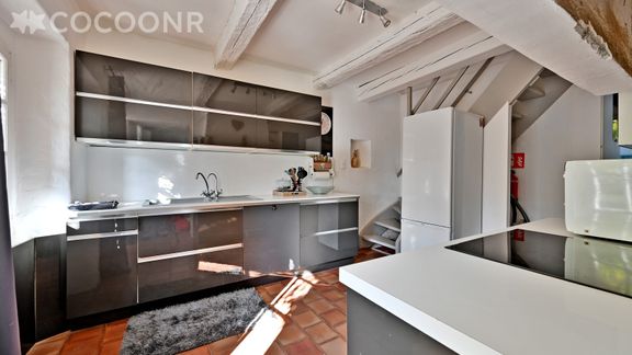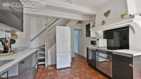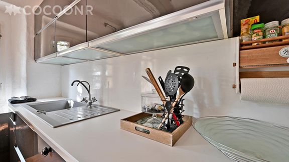 - Une cuisine équipée avec notamment : bouilloire électrique, four, four à micro-ondes, grille-pain, lave-vaisselle, plaques de cuisson...