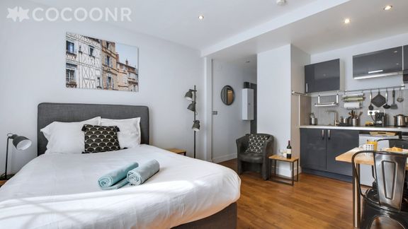 L'agence Cocoonr/Book&Pay vous propose à la location, à Toulouse, ce charmant studio d’une superficie de 25 m² et pouvant accueillir jusqu’à 2 voyageurs. Situé au rez-de-chaussée, il est constitué d’une pièce à vivre lumineuse, d’un coin bureau, d'une cuisine équipée et d'une salle d'eau. Wifi (fibre optique), draps et serviettes inclus, nous n’attendons plus que vous !