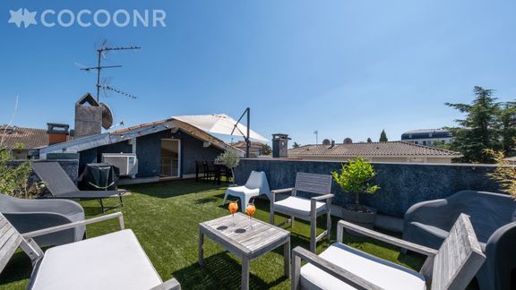 L'agence Cocoonr/Book&Pay vous propose à la location, Lumière Toulousaine, un duplex climatisé de 150 m² où élégance, lumière et sérénité se rencontrent à seulement 10 minutes du vibrant Capitole.