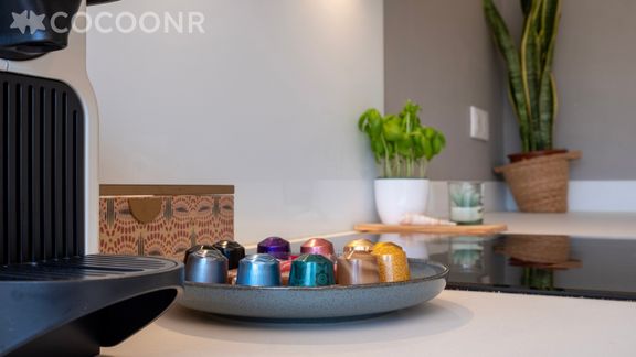 - La cuisine, pensée pour les épicuriens, est équipée de tout le nécessaire : four, micro-ondes, lave-vaisselle, plaques de cuisson, bouilloire, grille-pain et une machine à café pour vos matins en douceur.