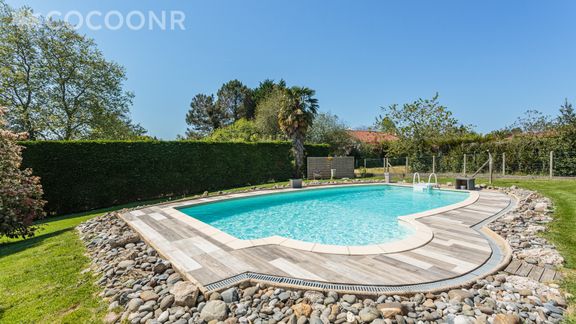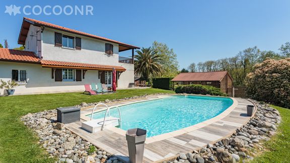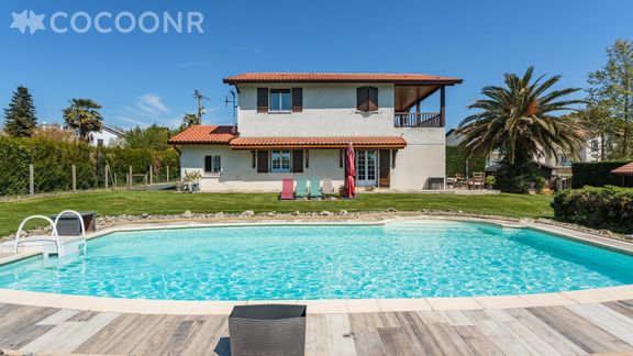 Nous vous proposons à la location, à Urt, cette charmante maison avec piscine, d’une superficie de 130 m² et pouvant accueillir jusqu’à 6 voyageurs. Elle est composée d’une jolie pièce à vivre de 27 m², cuisine équipée, de trois belles chambres, deux salles de bain et vous pourrez profiter d’un jardin d’environ 1 600 m². Nous n’attendons plus que vous !