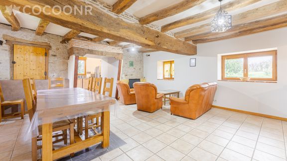 - Une pièce de vie de 60 m² avec TV, canapé-lit double,cheminée (bois fourni gratuitement)...