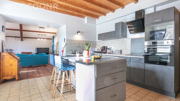 - Une cuisine équipée avec notamment : bouilloire électrique, four, four à micro-ondes, grille-pain, lave-vaisselle, plaques de cuisson...