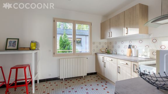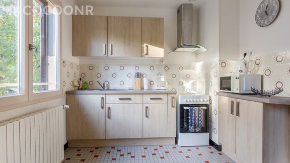- Une cuisine équipée avec notamment : bouilloire électrique, four, four à micro-ondes, grille-pain, plaques de cuisson...