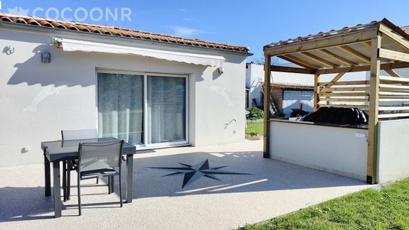 Venez découvrir ce charmant studio lumineux, avec terrasse et jardin, idéal pour une escapade à deux ! Vaux-sur-Mer vous réserve une multitude d'activités, de quoi remplir vos journées : balades à pied ou à vélo sur la magnifique côte de beauté, baignades, sports nautiques, croisières en bateau, marchés et autres animations... Ce studio aux lignes modernes est doté d'une grande pièce de vie aménagée avec un lit double escamotable et un espace repas, d'une cuisine entièrement équipée ouverte sur le séjour, ainsi que d'une salle d'eau avec douche à l'Italienne et WC séparé. Draps fournis, serviettes disponibles en supplément, Wifi. Les animaux sont interdits. À bientôt !