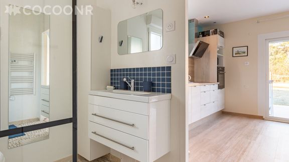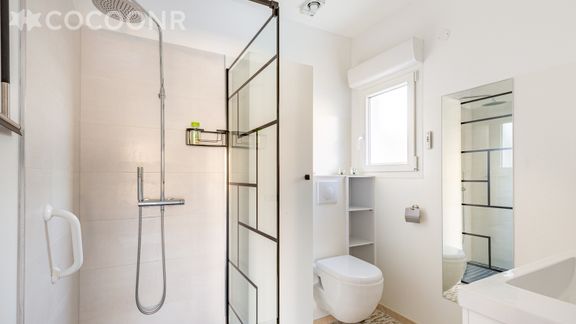- Salle d'eau aménagée avec douche à l'Italienne, lavabo, sèche-serviettes, WC.