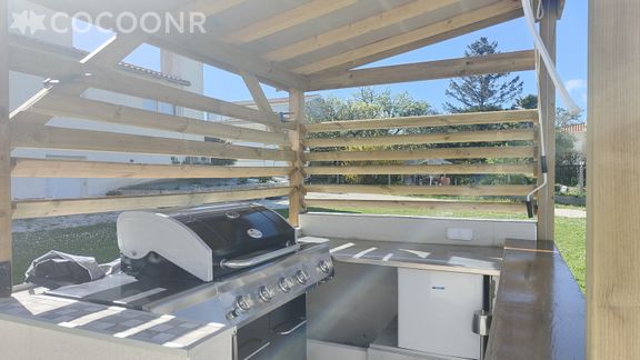 - Cuisine ouverte sur le séjour et entièrement équipée : four, réfrigérateur, plaques de cuisson, micro-ondes, cafetière Nespresso, bouilloire, grille-pain, vaisselle et couverts, machine à laver...