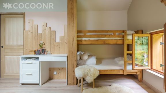 - Chambre 4 avec un lit double (140x190 cm) et deux lits superposés de 90x190 cm