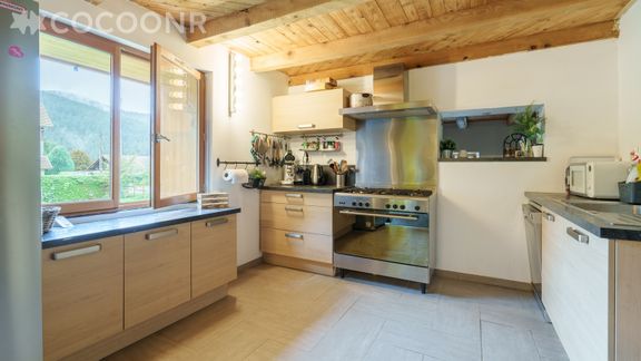 L'agence Cocoonr/Book&Pay vous propose à la location cette ancienne ferme vosgienne entièrement rénovée, idéalement située dans la commune de Ventron, avec une terrasse exposée plein sud. Répartie sur trois niveaux, cette maison de 147 m² peut accueillir confortablement 11 personnes. Au rez-de-chaussée, vous trouverez un espace de vie chaleureux de 26 m², une cuisine moderne entièrement équipée, cinq chambres confortables, ainsi que deux salles de bain (avec douche et baignoire). Vous pourrez également profiter d'un jardin spacieux de 1 000 m². Le Wifi (fibre optique), les draps et les serviettes sont inclus. Nous avons hâte de vous accueillir dans ce cadre idyllique !