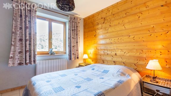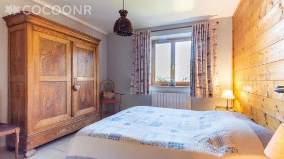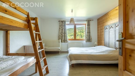 - Chambre 2 : un lit queen size (160×200) et lits superposés.
