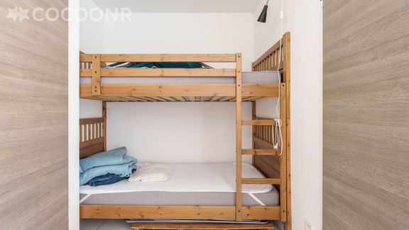 - Une pièce de vie de 24 m² avec TV, canapé, espace repas et un coin nuit avec un lit superposé (2 couchages)