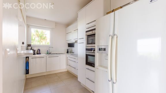 - Une cuisine équipée avec notamment : bouilloire électrique, four, four à micro-ondes, grille-pain, lave-vaisselle, plaques de cuisson...