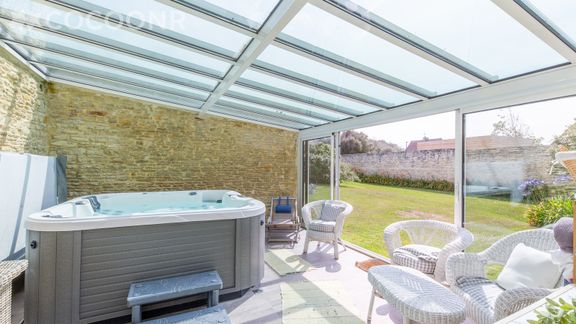 L'agence Cocoonr/Book&Pay vous propose à la location, sur la commune de Ver-sur-Mer, cette charmante maison située au cœur des plages du Débarquement de Gold Beach, avec vue mer, à proximité immédiate de la plage, avec jacuzzi, d’une superficie de 300 m² et pouvant accueillir jusqu’à 15 voyageurs. Elle est composée d’une jolie pièce à vivre de 55 m² (avec cheminée), une cuisine équipée, de sept belles chambres, de trois salles de bain (avec douche et baignoire) et vous pourrez profiter d’un jardin d’environ 600 m². Draps et serviettes inclus, nous n’attendons plus que vous !