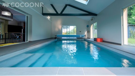 - Une piscine privée (8mx4m), intérieure et chauffée à environ 28°C, disponible de mai à octobre. Elle est entièrement fermée par des baies vitrées. Un cadenas ainsi qu'une grille pour la baie vitrée donnant sur le salon vient renforcer la sécurité.