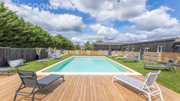 - Une piscine partagée et chauffée à 28° de 6 m x 11 m ouverte du 15 mai au 30 septembre, selon la météo (Dates d'ouverture non contractuelles)