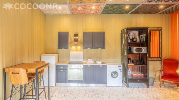 - Une cuisine équipée avec notamment : bouilloire électrique, four, four à micro-ondes, grille-pain, plaques de cuisson...
