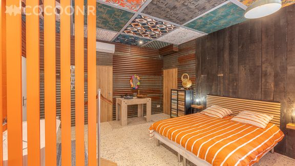 - Un espace nuit avec un lit queen-size (160×190) avec une baignoire