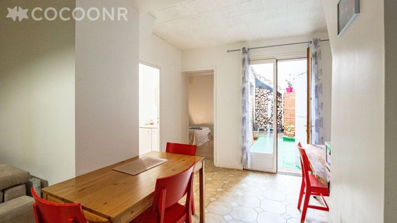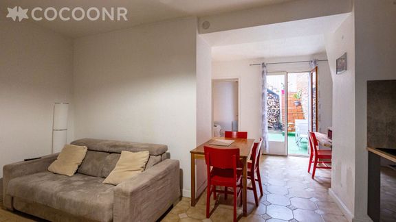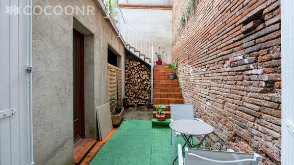 - Un jardin - terrasse clos entre des murs avec mobilier pour profiter des beaux jours.