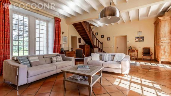 - Une pièce de vie de 54 m² avec TV, cheminée