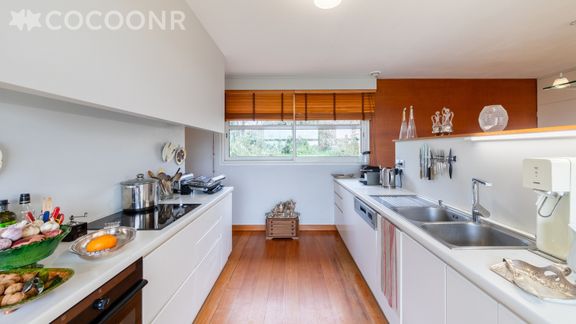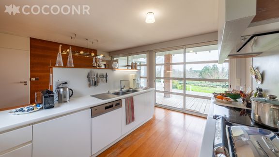 - Une cuisine équipée avec notamment : bouilloire électrique, four, four à micro-ondes, grille-pain, lave-vaisselle, plaques de cuisson...