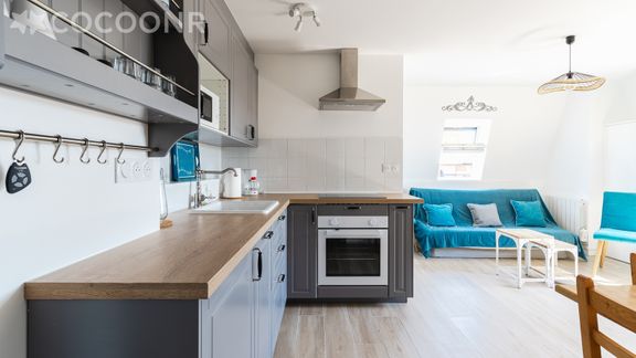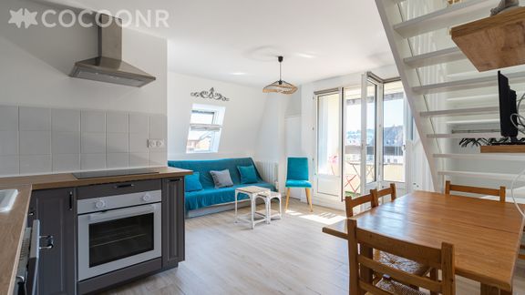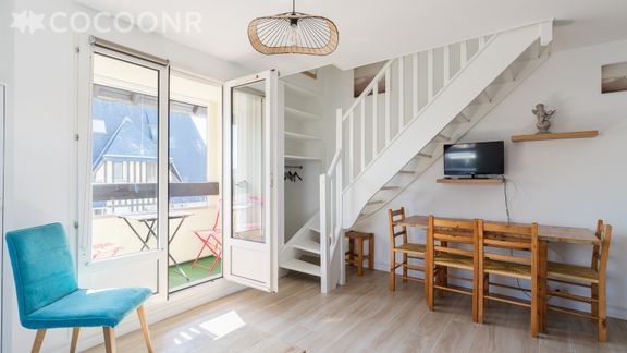 L'agence Cocoonr/Book&Pay vous propose à la location, sur la commune de Villers-sur-Mer, ce charmant appartement refait à neuf (en 2024) avec vue mer, à moins de 50 m de la plage, d’une superficie de 35 m² et pouvant accueillir jusqu’à 4 voyageurs. Situé au 4ᵉ étage (avec ascenseur), il se compose d’une jolie pièce à vivre de 20 m², d'une cuisine équipée, de deux chambres et d'une salle d'eau.