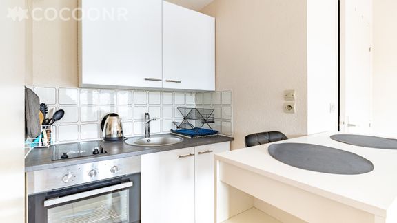 - Une cuisine équipée avec notamment : bouilloire électrique, four, four à micro-ondes, grille-pain, plaques de cuisson, cafetière à dosettes Nespresso...