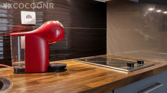 - Une cuisine équipée avec notamment : four à micro-ondes, lave-vaisselle, plaques de cuisson...