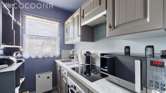 - Une cuisine équipée avec notamment : bouilloire électrique, four, four à micro-ondes, grille-pain, lave-vaisselle, plaques de cuisson...