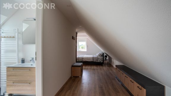 - Une chambre avec un lit king-size (180×200) et une armoire.