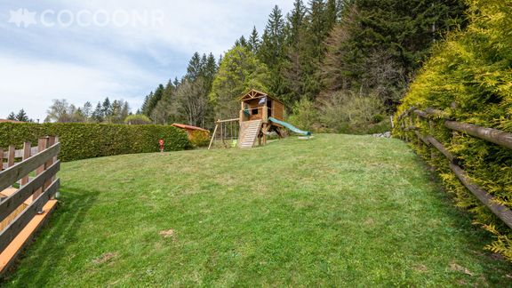 - Un beau jardin de 250 m² non clôturé avec une aire de jeux pour les enfants.