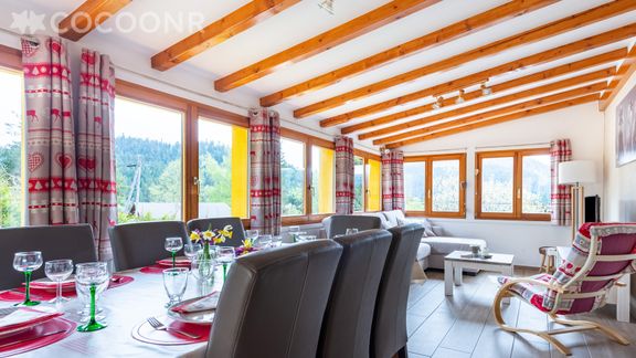 Nous vous proposons à la location, sur la commune de Xonrupt-Longemer, cette charmante maison, dans la vallée des trois lacs, d’une superficie de 120 m² et pouvant accueillir jusqu’à 10 voyageurs (idéal pour 6 adultes et 2 enfants. Elle est composée d’une jolie pièce à vivre de 22 m², d'une cuisine équipée, de quatre belles chambres, deux salles d'eau et vous pourrez profiter d’un jardin d’environ 250 m² ainsi que d'une terrasse. Wifi (fibre optique), nous n’attendons plus que vous !