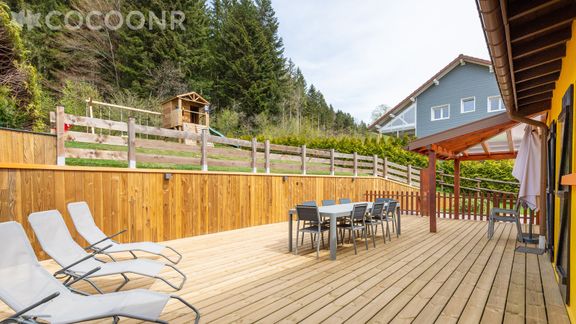 - Un balcon de 6 m² à l'avant de la maison avec vue sur la montagne.